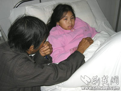 在縣人民醫(yī)院內(nèi)三科9病房里,潔白的病床上躺著一個面色蒼白、嘴唇發(fā)烏的小姑娘,她就是楊青。在楊青艱難地望過來的時候,記者的心不禁打了個顫:大眼睛沒有一絲神采!記者反復醞釀的問候語哽在喉中。楊青的父母、奶奶、姑媽,卻忍不住悲傷,淚如雨下!皸钋啵阃床煌?”“痛……”楊青張了張嘴,聲音弱得幾乎聽不見!澳睦锿,告訴阿姨好嗎?”“全身都痛!睏钋囝澏吨鲁鲞@4個字后,不再開口說話。