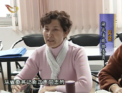 湖北省政協(xié)委員王敬璋 :" 黨的組織 政府 要提高執(zhí)政方面的能力 政協(xié)要提高參政議政能力 都要學(xué)習(xí)提高 是學(xué)習(xí)胡錦濤同志這一兩年來(lái)集中全黨智慧 提出的系列重大理論問(wèn)題 比如說(shuō)以人為本的問(wèn)題 執(zhí)政為民的問(wèn)題 科學(xué)發(fā)展的問(wèn)題 以及和平崛起 和平發(fā)展問(wèn)題 和建設(shè)和諧社會(huì)問(wèn)題 "