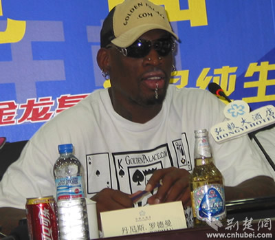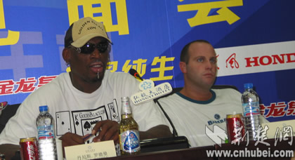 羅德曼和經(jīng)紀(jì)人戴瑞.普林斯在見面會(huì)上