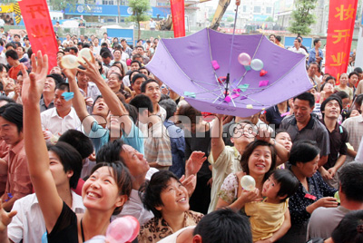 位于銷品茂北側(cè)的中商百貨銷品茂店昨日也同時開業(yè)。為吸引顧客眼球,中商百貨還在開業(yè)慶典時送出了1個價值7000元的鉆戒和5條鉑金項鏈,6位市民搶得“好運(yùn)”。
