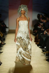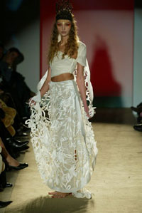 時(shí)尚的實(shí)驗(yàn)---如它所被定義的那樣---以擁有無數(shù)的褒獎(jiǎng)和特殊的證明為榮耀,并在世界范圍內(nèi)擁有無數(shù)的追隨者。她設(shè)計(jì)的多樣性使將她帶到比利時(shí)首席設(shè)計(jì)師Micha Van Hoecke的服裝秀去設(shè)計(jì)高級(jí)女裝。她明了且有棱角的風(fēng)格在她對顏色、材料和傳統(tǒng)的運(yùn)用上無不發(fā)揮的淋漓盡致。Marella Ferrera的風(fēng)格被描繪成既冷靜又線條明朗,通過對于一些原始材料的使用,像熔巖,玻璃,海芋,百合,無色水晶,刺繡雕刻,她常常創(chuàng)造出一些微型的藝術(shù)品.西西里亞、拉瓦、十勝石、陶瓦、無色水晶、銅、紙草以及紡織紙品,軟木和棕櫚樹根、皮革、緞帶、所有的蔬菜和動(dòng)物的毛皮等等都會(huì)成為她穿著的重要的靈感來源。"...服裝必須是完美協(xié)調(diào)穿著者的東西,而不能讓人成為服裝的傀儡..."