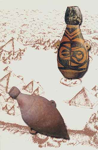 魚鳥紋葫蘆形彩陶瓶:水器(高29厘米)