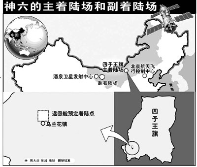 “飛船在軌飛行時(shí)間由1天變?yōu)槎嗵,使得著陸?chǎng)系統(tǒng)必須全面啟用副著陸場(chǎng)!彼迤饎僬f(shuō)。由于目前技術(shù)條件的限制,還無(wú)法對(duì)長(zhǎng)期的氣象變化進(jìn)行精確預(yù)報(bào),這就使得在選擇飛船“發(fā)射窗口”時(shí),無(wú)法完全保證主著陸場(chǎng)的氣象條件適合降落。位于內(nèi)蒙古中部草原四子王旗的主著陸場(chǎng)和位于酒泉附近的副著陸場(chǎng)相隔1000多公里,可以起到氣象備份的作用。