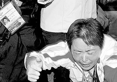劉青的另一名教練張敏情緒激動(dòng),攔住了一名仲裁理論。記者越來(lái)越多,把倆人圍在中間。張敏不斷大聲喊叫:“我只要一個(gè)公平!”聲音逐漸嘶啞。仲裁向電梯走去,她硬扒住電梯。仲裁只能返回到競(jìng)賽控制中心,但中途又被張敏擋住。她甚至哭著跪倒在地,幾乎暈厥(如圖)。