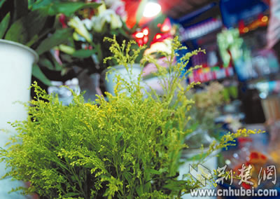 7月18日,讀者來(lái)電反映:在漢口球場(chǎng)路武漢花鳥(niǎo)市場(chǎng)內(nèi),有人售賣(mài)像“滿天星”一樣的花草,疑似有害生物“加拿大一枝黃花”。記者隨即趕到該市場(chǎng),只見(jiàn)臨街10余家門(mén)面里,都擺放有這種花(如圖)。