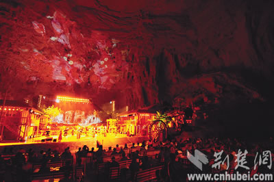 利川騰龍洞成為天然的文藝表演劇場。本報記者楊平攝