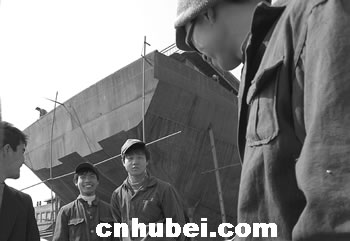 在武漢長(zhǎng)江和漢江的江灘上,一些沒(méi)有造船資質(zhì)證書的私人船東,招募了一批來(lái)自河南的農(nóng)民工,建造了數(shù)十條貨輪。這些農(nóng)民工收入低微,生活和工作條件都很艱苦。