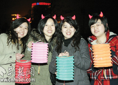 中山公園里,一對(duì)對(duì)情侶紛紛登上湖中的小舟,在燭光中許下愛(ài)情的誓言。25歲游客小敏舉著燈籠,偎依在男友的懷里,羞澀地笑著告訴記者:“今天我同意嫁給他了,這是我們金豬年最大的喜慶!