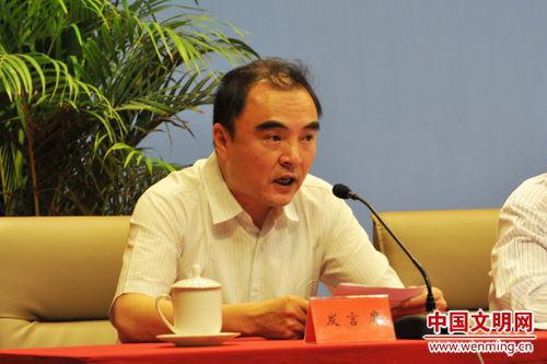 人民網(wǎng)總裁兼總編輯廖玒代表全國百家網(wǎng)站宣讀《爭創(chuàng)“文明網(wǎng)站”倡議書》。