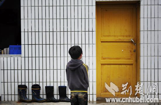 趙曉曉宿舍前,二年級學生楊銀松默默站著,房門緊閉。