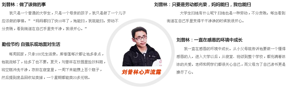 劉普林的可貴不僅在于為母分憂,而是一起掃街的身影讓人動(dòng)容,母慈子孝承載著無(wú)數(shù)中國(guó)人企盼家庭和樂的人生理想。