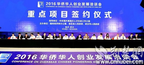 湖北日?qǐng)?bào)訊(記者周呈思)昨日上午,在2016華僑華人創(chuàng)業(yè)發(fā)展洽談會(huì)重點(diǎn)項(xiàng)目簽約儀式上,數(shù)十位中外簽約代表分三組上臺(tái),集中簽約29個(gè)項(xiàng)目,包括10個(gè)人才項(xiàng)目、19個(gè)投資項(xiàng)目,其中投資過億元的項(xiàng)目達(dá)18個(gè)。