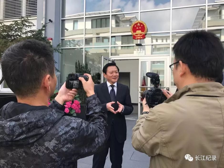 攝制組采訪中國駐德國總領館馮海洋總領事
