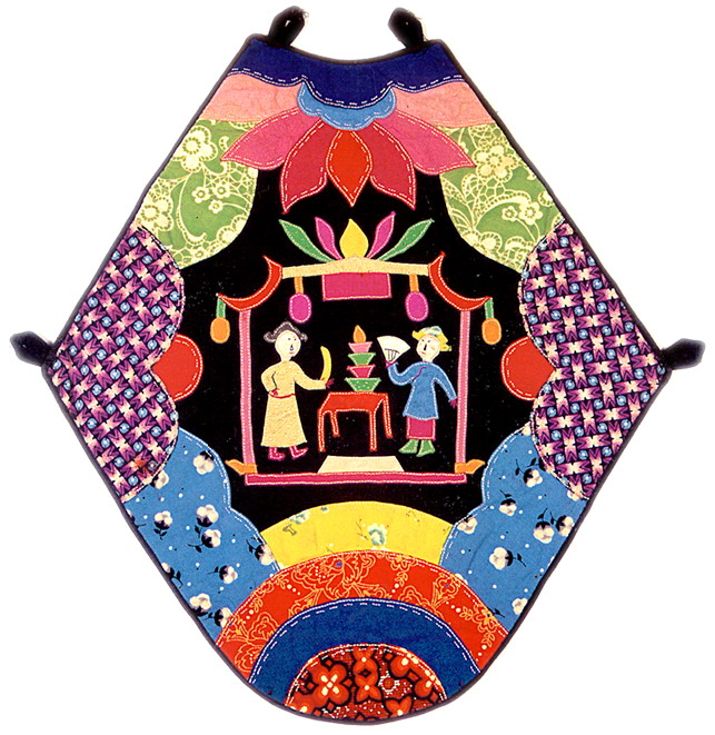 在盛產(chǎn)蠶絲、棉花的湖北,刺繡是廣大城鄉(xiāng)婦女極為喜愛的手工藝。幾千年男耕女織的傳統(tǒng)風(fēng)俗,促使女孩子從小就在母親的教習(xí)下穿針引線、挑花繡朵。姑娘出嫁,總不免要挑繡一些日用品作“陪嫁”,在寓意愛情幸福美滿之時,也展示新娘的心靈手巧,以博取左鄰右舍的稱贊。故湖北有“無女不繡花”之說。